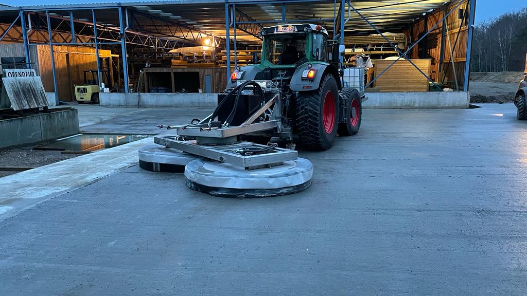 Het team van Art & Reno heeft deze betonvloer mooi vlak gefreesd. Nu kan de klant weer vlot rijden met de heftrucks.